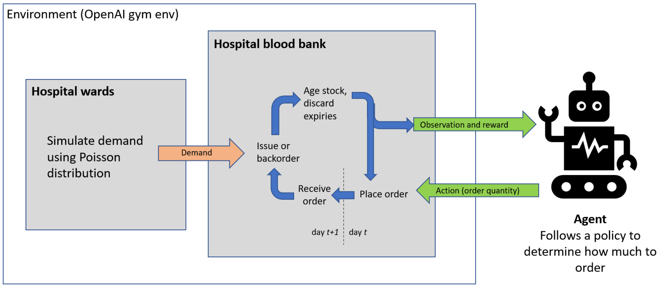 Platelets are a blood component required for the formation of clots. Patients may receive a platelet transfusion to either stop or prevent bleeding. Hospital blood banks hold stock on-site to fill orders for patients, and place orders for replenishment with a regional blood bank that serves multiple hospitals. This stock management process is complicated by the need for compatibility between donor units and patients, and by the short shelf-life of platelets. We created an reinforcement learning environment based on a platelet replenishment scenario from the literature and demonstrate that DRL methods can be used to learn effective ordering policies.